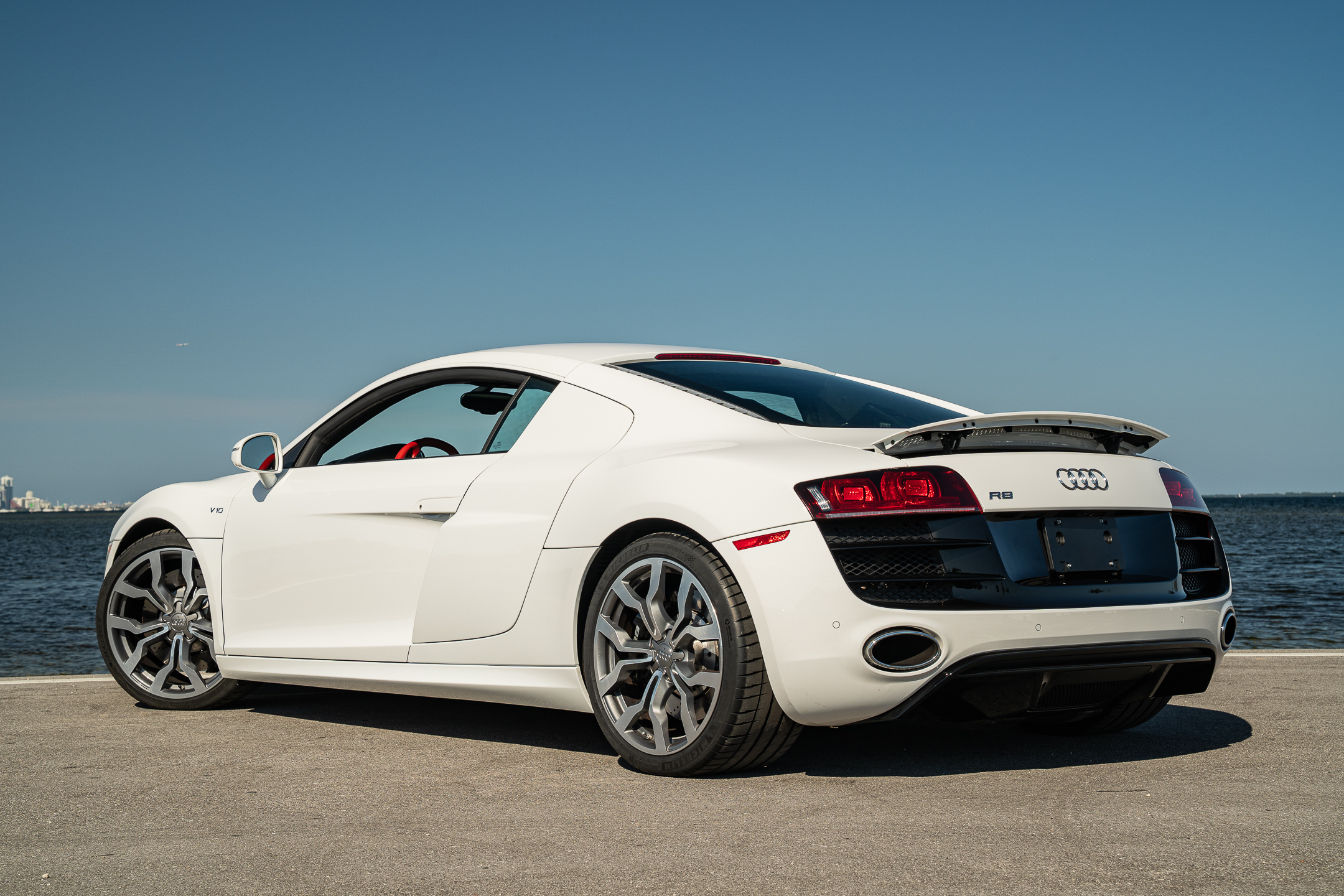 This example of a rare, gated, 6 speed V10 Audi R8 is a brilliant one. Finished in Ibis White over Red Leather seats, this R8 stood out from the rest with its pop of color on the interior. With its red steering wheel, shifter and hand brake, the inside of this R8 is still in great condition, having been enjoyed responsibly for 1596 miles.